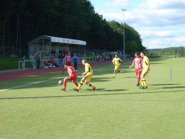 Mit einem 22m-Schuss eröffnete Daniel Buballa den Torreigen gegen den Bezirksliga-Meister aus Malberg. (12.). Der neue Rheinlandligist schlug aber kurz vor der Pause durch einen Doppelschlag seines Spielers Spiess (40., 42.) zurück, wobei das zweite Tor nach Ansicht der Asbacher aus abseitsverdächtiger Position fiel.