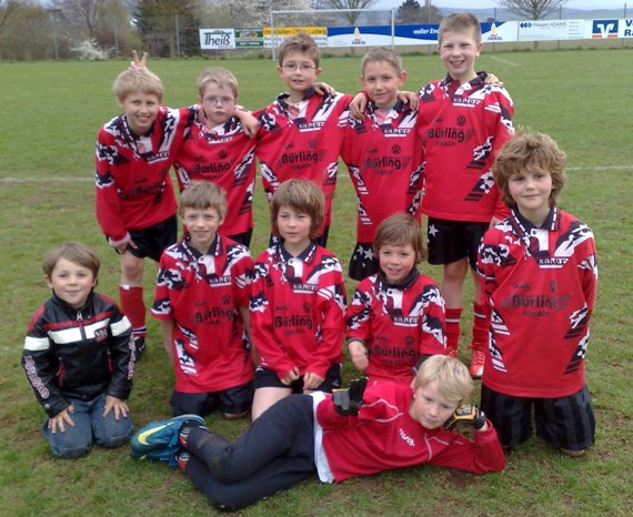 Mit den Trikots, mit denen unter anderem mein Cousin Pascal die D-Jugend Staffel der Saison 94/ 95 mit 24:0 Punkten (alte Punkteregel) und 85:4 gewonnen hatte, gewannen wir heute 11:0 beim ersten Staffel Spiel der F1-Jugend Saison 2010/ 11.