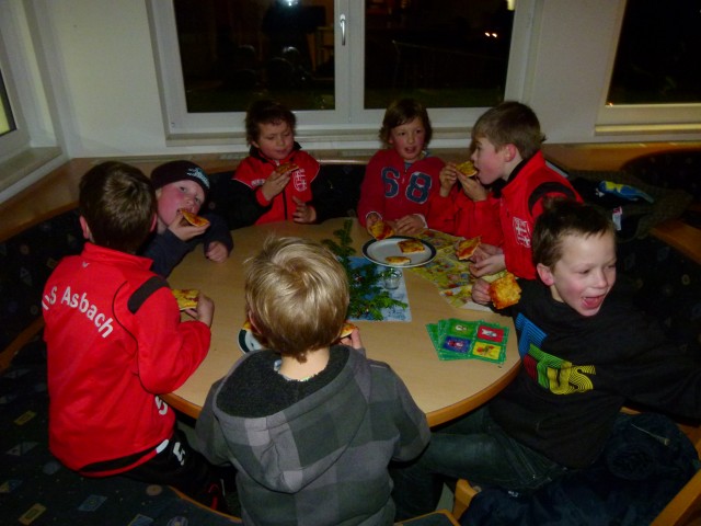 Am Freitag, den 09.12.2011, traf sich die komplette F-Jugend (FI und FII) zur Weihnachtsfeier am Sportlerheim. Mit dem Wetter hatten wir Glück, so dass wir bis zum Essen der Pizza noch Fußball, Kicker und Fangen spielen konnten.