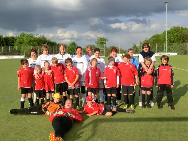 Zum Saisonhöhepunkt trafen wir heute auf unsere eigenen Mütter. Diese hatten sich mit Marius im Tor gut verstärkt und mit harten Trainingseinheiten gut auf das Spiel vorbereitet. Dies merkte man auch zu Beginn des Spiels, als sie mit guten Aktionen starteten. Trotzdem gingen wir in Führung, die Mütter konnten aber fast im Gegenzug ausgleichen. Die spannende 1. Hälfte ...