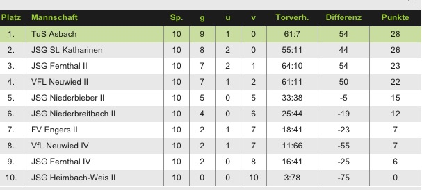 Asbach Tabellenzweiter (ein Spiel weniger wie St. Katharinen)