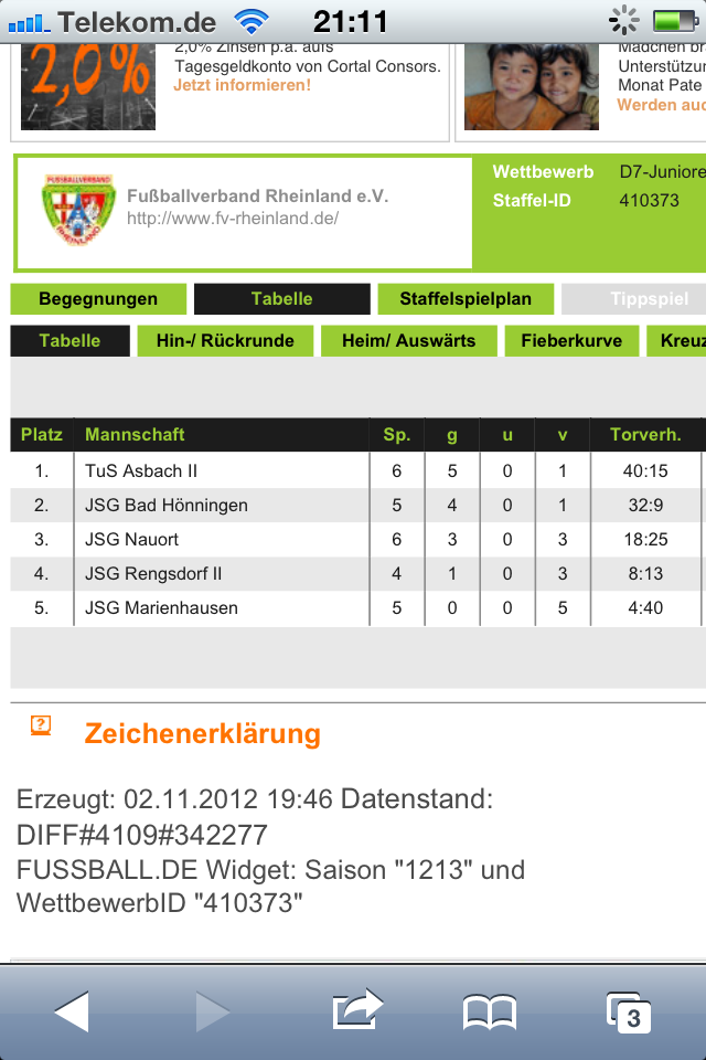 den Tabellen 1. aus Bad Hönningen zum Topspiel.
