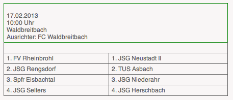 Da Rheinbrohl mit beiden Mannschaften gegen uns spielen wollte, stellten wir zwei Teams.