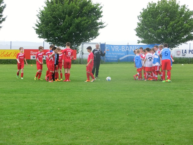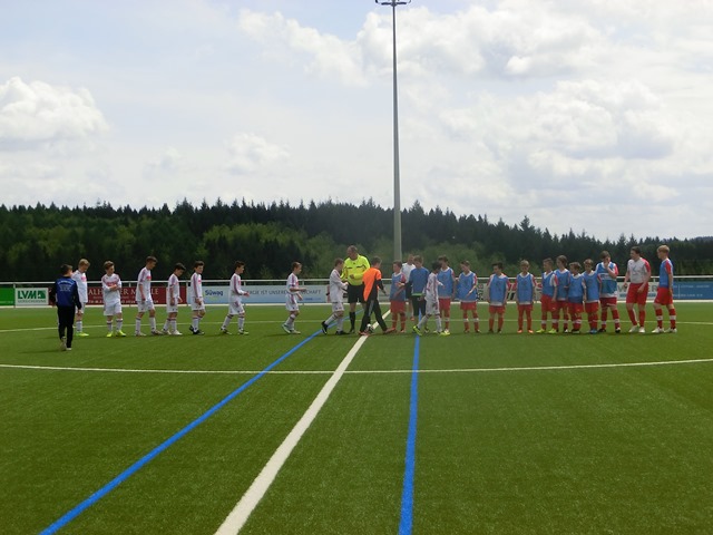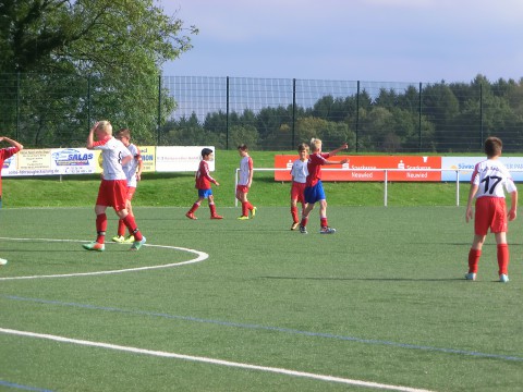 Es entwickelte sich ein ausgeglichenes und schönes D-Jugendspiel. Beide Mannschaften erspielten sich mit ansehnlichen Kombinationen viele Chancen, wobei zuerst nur der Gastgeber seine nutzte und mit 2:0 in Führung ging. Erst kurz vor Ende der 1. Halbzeit netzte Can nach Flügel ...