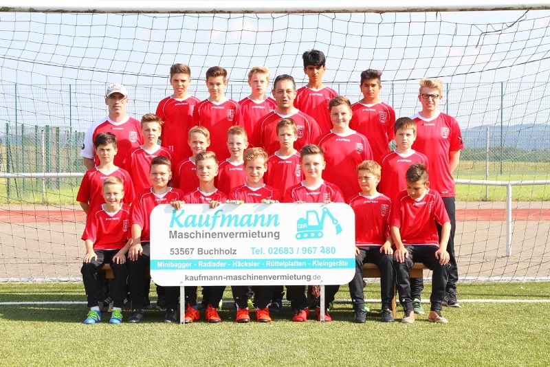 Die DII-Jugend des TuS Asbach bedankt sich im Namen aller Spieler, des Trainerteams und aller Verantwortlichen bei ihrem Sponsor Kaufmann Maschinenvermietung für die neuen Aufwärmshirts