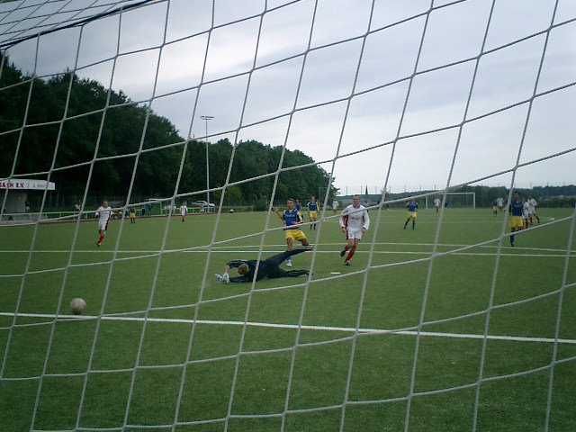 Keine Chance fuer den guten Keeper der SG Oberbieber
