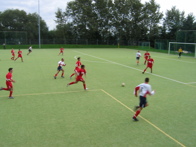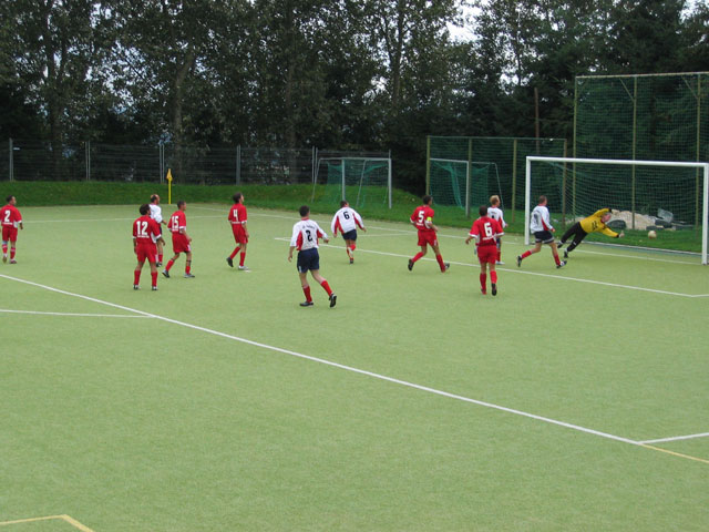 Trotz des klaren Sieges hatte Asbach zunächst einige Probleme mit dem kleinen Platz. Doch nach einer kurzen Eingewöhnungsphase übernahm Asbach die Initiative. Zunächst scheiterte aber die Mannschaft zweimal hintereinander am gegnerischen Gehäuse: Pfostenschuss durch Andy Geuss und Lattentreffer im Nachschuss durch Stephan Nowak (25.). Doch dann ging es Schlag auf Schlag. Mit einem Heber über den Torwart durch Andre Plahs (34.) und durch einen Kopfball-Treffer von Frank Roth (35.) fiel schon vor der Pause die Entscheidung. Im zweiten Abschnitt resignierten die Gastgeber und Asbach kam noch zu vier weiteren Treffer durch Christoph Vollmert (51.), Manni Brosewski (65.), Sascha Gey (70.) und Thorsten Hess (78.).