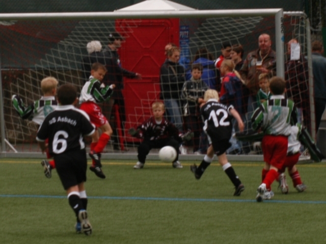 Das vorletzte Spiel ging gegen die Kinder von der Sportschule Hennef. Diese Mannschaft hatte die Gruppe bis dahin deutlich dominiert und ihre hochklassigen Fähigkeiten schon in den vorherigen Gruppenspielen gezeigt. Die Asbacher Mannschaft war klar unterlegen, hat aber weitestgehend gekämpft und sich eigentlich sehr achtbar mit einem 0:8 gegen den späteren Zweiten des Turniers aus der Affäre gezogen.