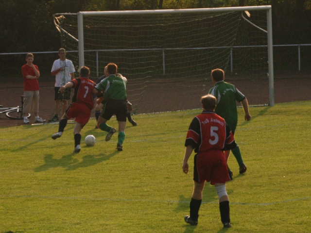 Und ab da hätte es langweilig werden können. Deshalb nutzte Asbachs Torwart gleich die erstbeste Möglichkeit nochmal ein wenig Spannung aufkommen zu lassen. Er legte sich den Ball zwar nicht gleich selbst in Netz, aber wenigstens schmiss er sich bei einem gegnerischen Freistoß so wenig energisch und zielgerichtet ins allgemeine Getümmel das er halt nicht da war wo er sein sollte, nämlich auf der Linie. Folglich hatte der Oberlahrer Stürmer auch keine große Mühe den Ball per Kopf über die Linie zu befördern. Nach warmen Worten des Dankes aus den eigenen Reihen ging es dann aber auch weiter. Asbach schien noch ein wenig um den Ausgleich zu betteln, berappelte sich dann aber wieder und brachte das Spiel schließlich sicher über die Zeit.