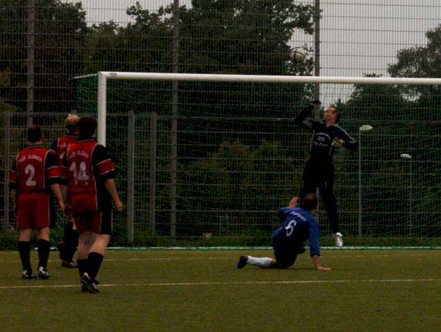 Nun, kaum war es losgegangen schon stand es 2:0. Danach ging es weiter immer nur in Richtung auf ein Tor. Zunächst fand der Ball aber nicht mehr den Weg ins Netz. Erst als Günter Krautscheid den ein klein wenig zu weit vor seinem Kasten stehenden Torwart des Gegners mit einem Lob zum 3:0 überlistete, ging die Torproduktion weiter bis zum 5:0 Pausenstand. Bis dahin waren die Gegner kaum gefährlich vor dem Asbacher Tor aufgetaucht. Lehrbuchgerecht fing nämlich die Asbacher Defensivarbeit schon weit in der gegnerischen Häfte an. Das Umschalten auf den Angriff funktionierte auch Bestens. Allerdings verhinderten in der ersten Halbzeit gute Paraden des gelsenkirchener Torhüters und noch nicht hinreichend kalibrierte Zielerfassungen der Asbacher Stürmer ein noch höheres Halbzeitresultat.