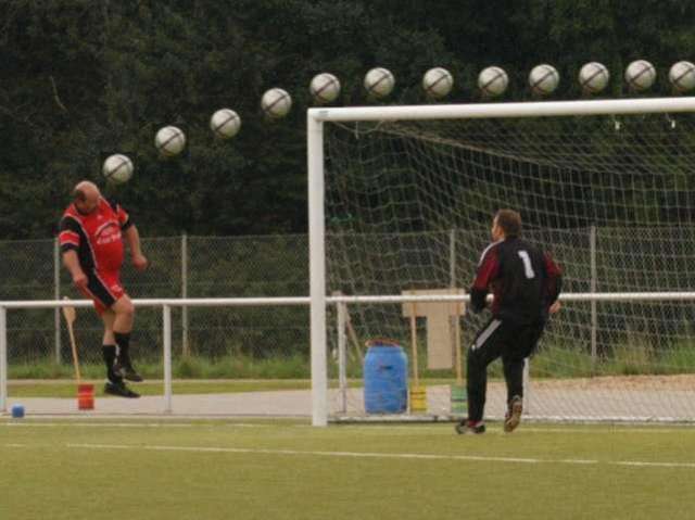 Nach der Halbzeit ging es im selben Stil munter weiter. Ramazan Özmen knipste kurz nach Wiederanpfiff das 6:0 in den Kasten. Danach durften alle Stürmer auch nochmal. Besonders gefiel ein Asbacher Naturtalent in Sachen Kopfballspiel. Nur unerklärbare physikalische Phänomene verhinderten den Erfolg (s. Bild).