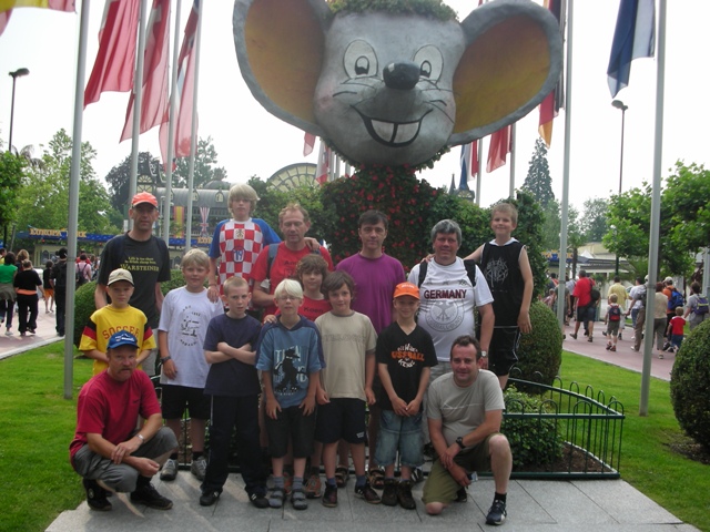 Die E-Jugend hatte am Freitag, den 08.06.2007 eine Delegation zum Europa-Park-Cup 2007 des SV Rust geschickt. Neun Spieler, 2 Trainer ein Betreuer und drei fleißige Väter bildeten die Asbacher Vertretung unter den insgesamt 56 E-Jugend-Mannschaften bei diesem Turnier. Abgesehen von vielleicht ein klein wenig zu wenig Duschen war der äußere Rahmen (Das Spielgelände lag direkt an der Silverstar Achterbahn) und die Organisation des Turniers sehr gut. Die Delegation hatte sich auf einem von der Vorhut gekaperten Bereich der Zeltwiese in aller Ruhe häuslich einrichten können. Alle Spieler konnten sich dort in aller Ruhe umziehen und sich auf die am Freitag ab 14:00 Uhr ausgetragene Vorrunde vorbereiten.