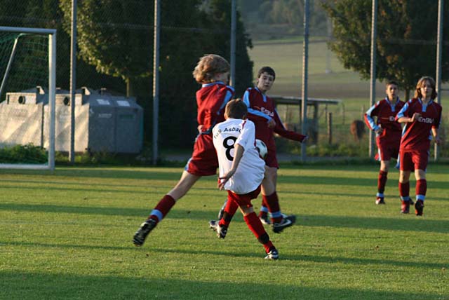 Zum Abschluß handelte sich Robin noch den Namen Doppelkopf ein. Wunderschöne Flanke von Isi auf dem rechten Torpfosten, Robin köpft gegen die Latte, der Ball kommt zurück und Robin köpft ins Tor, 5:1.