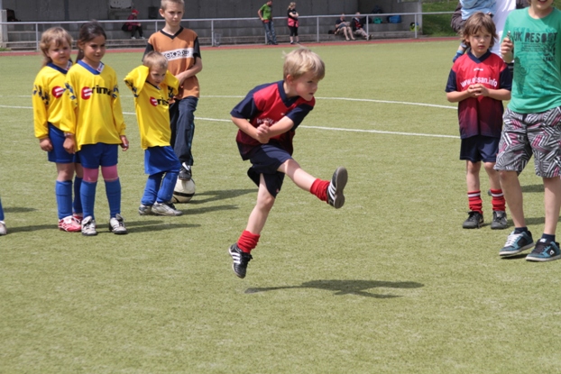 Durch die großzügig ausgelegten Spielregeln hatten auch die letzten Eltern schnell begriffen – heute geht es nicht um Punkte und Platzierung – Bewegung, Anstrengung, Spaß und Freude waren die Hauptgrundsätze an diesem Tag und dieses beweisen ausdrucksvoll folgende Bilder ( einige von ca. 500 – Danke Marcel) . Aber auch ein Dankeschön an alle, die zum Gelingen dieses Bambini-Treffs beigetragen haben.