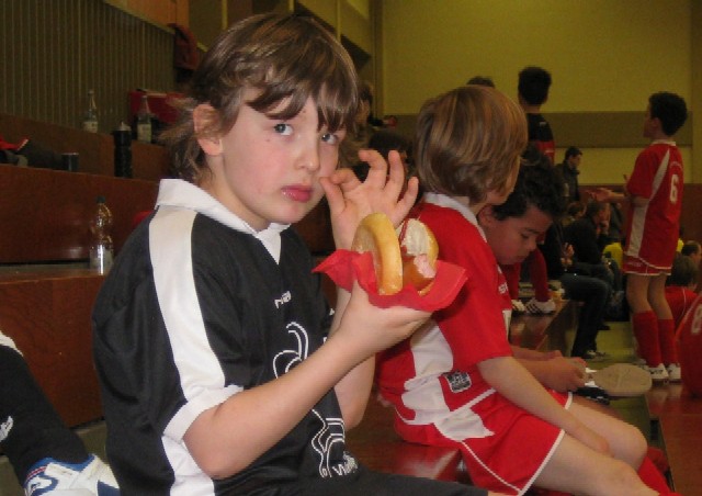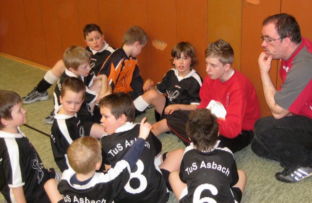 Auch heute war wieder ein Fortschritt der einzelnen Spieler zu erkennen, teilweise war kein Unterschied zu den fast ausschließlich aus älterem Jahrgang bestehenden Mannschaften zu erkennen. Da wir unsere gute Leistung aber nie über die volle Spielzeit halten konnten, ein bisschen Pech in der Verwertung von Chancen hatten, reichte es nur zu einem 5. Platz. Dafür hatten wir die besten Fans (Eltern und Geschwister) dabei, die in großer Zahl mitgereist, ihre Mannschaft immer fair und lautstark bis zum Ende unterstützten.
