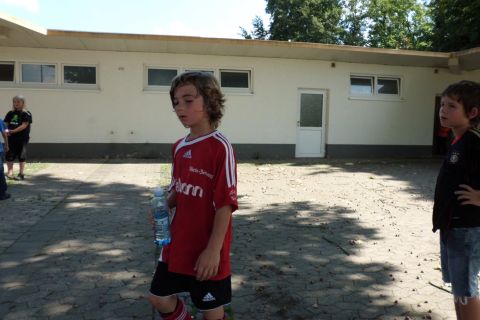 3)Aber was war mit Levin, dem Torwart? Mitte der zweiten Halbzeit dann Freistoss für uns kurz vor dem gegnerischen Strafraum. Mir kam eine Idee… Schnell noch mit dem gegnerischen Trainer Kontakt aufgenommen und nachgefragt, ob er es als Provokation empfinden würde, wenn der Torwart schießt. „Nee, nee, kein Problem“ war seine Antwort. Levin ließ sich diese Chance dann natürlich nicht entgehen. So hatten dann tatsächlich ALLE Spieler heute mindestens einmal getroffen.
