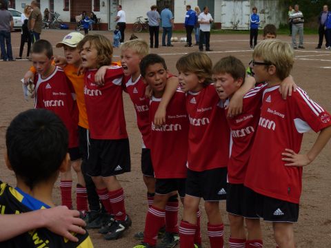 Nach der Halbzeit dann eine taktische Umstellung, Nico wurde aus dem offensiven Mittelfeld ins defensive Mittelfeld zurückgezogen, um die gegnerischen Angriffe(die Neuwieder hatten zwei saustarke Stürmer) frühzeitiger zu unterbinden. Aber dadurch hatten wir zwar weniger Probleme hinten, aber nach vorne passierte einfach zu wenig. In der 40.Minute wurde Carlos gefoult, der Freistoß von Jonas landete auf dem Knie eines gegnerischen Abwehrspielers und den Abpraller konnte Nico dann mit einem schönen Linksschuß zum 3:1 verwandeln. Aber auch jetzt immer noch keine Ruhe in unserem Spiel, nur 2 Minuten später der erneute Anschlusstreffer zum 2:3. Es wurde noch mal richtig spannend. Und dann auch noch zweimal richtig brenzlig, unter anderem klärte Nico einmal für den bereits geschlagenen Levin auf der Torlinie und einmal klärte Levin bravourös. 3 Minuten vor Schluß dann aber die Erlösung, als Nico einen beherzten Alleingang zum 4:2 abschloss. Wenig später war nach Ansage des Schiedsrichters noch 1 Minute zu spielen. Von draußen noch mal die Anweisung des Trainers, sich noch mal voll zu konzentrieren und bloß keinen mehr reinzulassen. Aber Angriff ist ja bekanntlich die beste Verteidigung Den Abstoß des gegnerischen Torwarts nahm der nach zwei eigenen Lattenschüssen wütende Arif technisch gekonnt an, dribbelte 3 Gegenspieler aus und ließ einen wunderschönen Schuß ins rechte untere Eck folgen. TOOOR !!! Dann Anstoß für Neuwied, Arif luchst den Ball dem Gegenspieler ab, dribbelt wieder 3 Gegenspieler aus und wieder ein strammer Linksschuß ins rechte untere Eck. TOOOOR !!!
