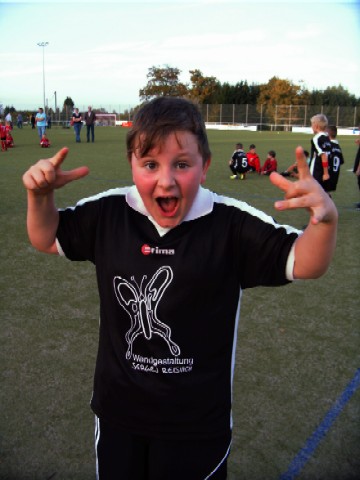 In der 2. Hälfte waren wir zwar weiterhin überlegen, aber erst gegen Ende des Spiels konnten wir den Vorsprung ausbauen. Der Höhepunkt der 2. Halbzeit, eigentlich vom ganzen Spiel, war das Tor von Robin „Robinio“ zum 8:1 (siehe auch den nachgestellten Torjubel bei den Bildern). Nach Querpass von Felix netzte er souverän ein.