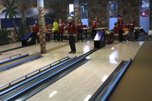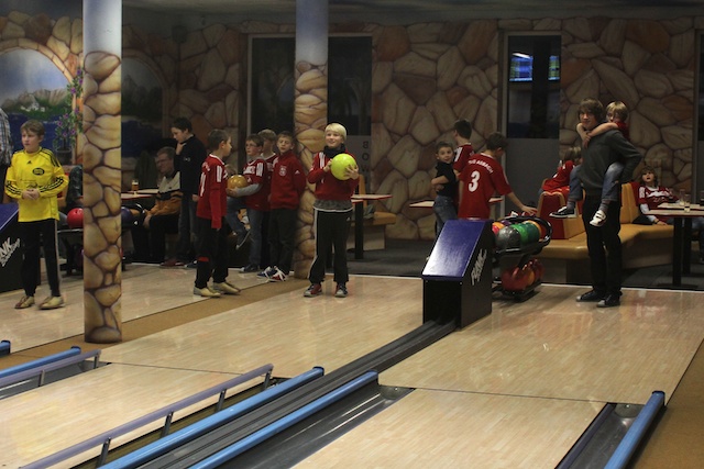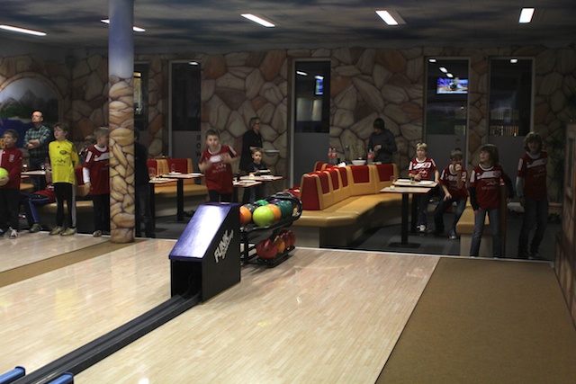 Gespielt wurde auf zwei Bahnen, bei Manuel Hardt und mir waren die Banden runter, bei den Kids