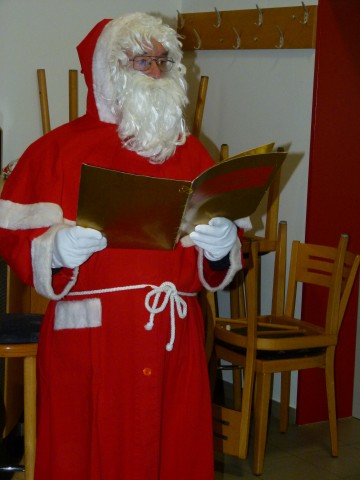 Dann wurde es für ein paar Minuten sogar richtig Leise, als der Nikolaus unsere Feier besuchte. Er hatte zu allen Spielern was zu erzählen, zum Glück fast nur Positives, er brauchte auch keine Rute. Zum Höhepunkt der Feier verteilte er noch die Geschenke: „Omas“ und süße Tüten. Wobei die Omas (schalähnliche Halstücher, genau richtig für Fußballer in der kalte Jahreszeit.) der absolute Höhepunkt waren.