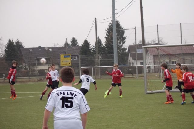 Im heutigen Heimspiel trafen wir in der sogenannten Meisterrunde(in der die 1.und 2. der Vorrunde landen und die somit der Leistungsklasse, die es bei den höheren Jugendmannschaften ab der D-Jugend gibt, entspricht) auf den VfB Linz.