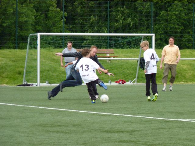 Und auch das alljährliche Duell der Giganten(E1 gegen den Rest der Gäste) konnte dann wieder durchgeführt werden. Im Vorjahr hatten die Eltern noch 13:6 gewonnen, diesmal wurde es deutlich spannender, die Eltern(+ die Jungstars Ömer und Lars) konnten noch knapp mit 6:4 die Oberhand gewinnen. Ich wage mal die Prognose, dass es im nächsten Jahr nicht mehr viel zu gewinnen zu gewinnen gibt für die Eltern + Geschwister.