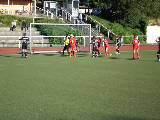 Die Anfangsphase im Spiel gehörte uns. In den ersten 10 Minuten schnürten wir die Windhagener in deren Hälfte ein und ließen sie kaum ihre gefürchteten Konter fahren. Die Belohnung folgte: Schöner Schuss von Joshua Abend, tolle Parade des gegnerischen Torwarts, aber Jan Rankenhohn nagelte den Abpraller direkt unter die Latte zum 0:1. Leider konnten wir die anfängliche Dominanz nicht die ganze Halbzeit durchhalten, die Windhagener Jungs kamen stärker auf und schafften dann kurz vor der Halbzeit durch ein schönes Kopfballtor nach einer Ecke den verdienten Ausgleich. Mit dem 1:1 ging es dann auch in die Halbzeitpause. Die Jungs wurden sehr gelobt für ihr tolles Spiel, aber man konnte schon merken, dass das Spiel auch Kräfte gekostet hatte.