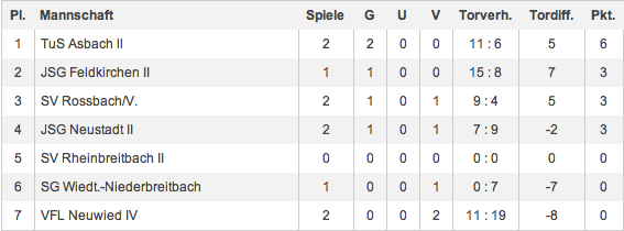 Vier der sieben Mannschaften haben zwei Spiel, wir haben alleine alle gewonnen und sind somit