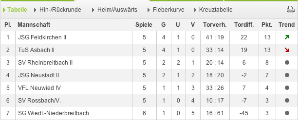 Aufgrund einer besseren Tordifferenz, steht Feldkirchen vor uns.