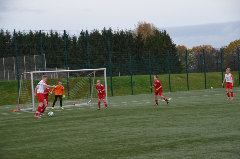 Am Samstag, den 07.10. trafen wir im 8ten Meisterschaftsspiel auf die JSG Unterwesterwald/ Görgeshausen. Die gegnerische Mannschaft hatte immerhin in der Meisterschaft die Spfr. Eisbachtal besiegt und bestand nur aus Spielern des jüngeren Jahrgangs. Unser Ziel war es, mit einem Heimsieg die Tabellenführung zu verteidigen. So begannen wir engagiert und ließen dem Gegner von Beginn an keinen Raum zum Spielen. Es fielen dann auch bereits in der 3ten (durch Manuel Buda) und 4ten Minute (durch Moritz Kohr ) die Treffer 1 und 2. Das Spiel wurde, in der ersten Halbzeit, von uns klar dominiert, so dass das 3:0 nur eine Frage der Zeit war. Moritz Kohr gelang dies in der 23ten Minute. Die JSG kam zum ersten Mal in der 28ten Minute in die Nähe unseres Tores, so klar war unsere Überlegenheit.
