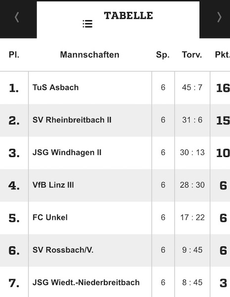 TuS Asbach E1 vom 23.11.2015 Abschlusstabelle