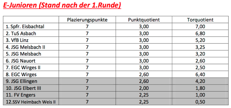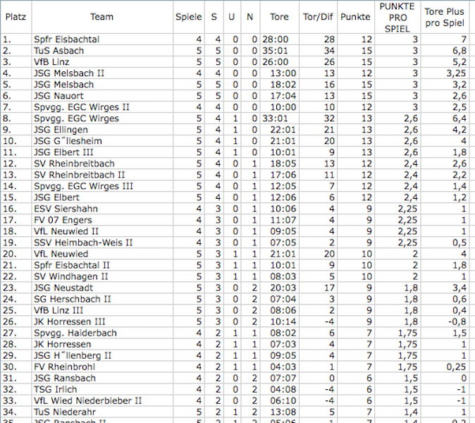 E-Jugend sortiert nach Punkte/ Spiel - Tore Plus/ Spiel