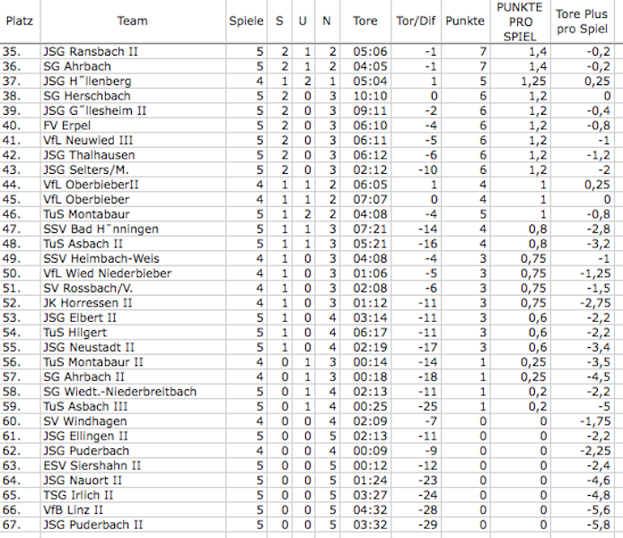 6. Linz 2, 4:32 Tore, 0 Punkte