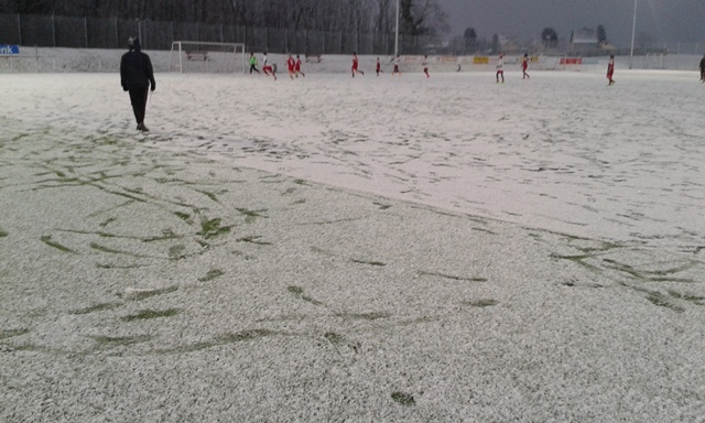 Im vierten Testspiel trafen wir am Donnerstagabend auf unseren Nachbarn. Eine Woche zuvor musste das Spiel noch wegen des Wintereinbruchs abgesagt werden. Auch heute setzte pünktlich zu Spielbeginn heftiger Schneefall ein.