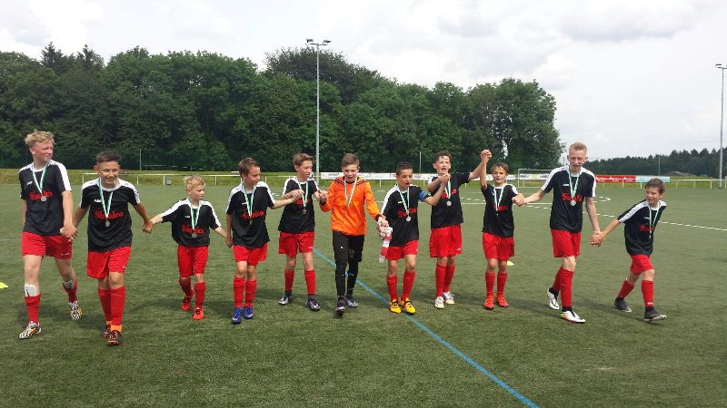 Der zweite Abschnitt begann mit weiterem Druck der Ahrbacher und so erzielte die Nr.7 den 3:2 Anschlusstreffer. Wir stemmten uns mit aller Entschlossenheit dagegen und Moritz gelang nach präziser Flanke von Max, mit einem Seitfallzieher, das 4:2, das schönste Tor unseres Teams der Saison und ein Tor wie aus dem Bilderbuch. Ahrbach gab sich aber immer noch nicht geschlagen und erzielt in der nächsten Spielminute das 4:3. In der Restspielzeit, wurde von beiden Teams um jeden Ball verbissen, aber immer fair, gekämpft. So blieb bis es zum Abpfiff stets spannend und das Spiel endete nach 60 Minuten mit einem 4:3 Sieg und der damit gewonnenen Kreismeisterschaft. Im Anschluss an das Spiel wurde, vom Staffelleiter Peter Stamm, die Meisterehrung vorgenommen. Unter großem Jubel der zahlreichen Fans empfing das Team die Meisterschaftsmedaillen.
