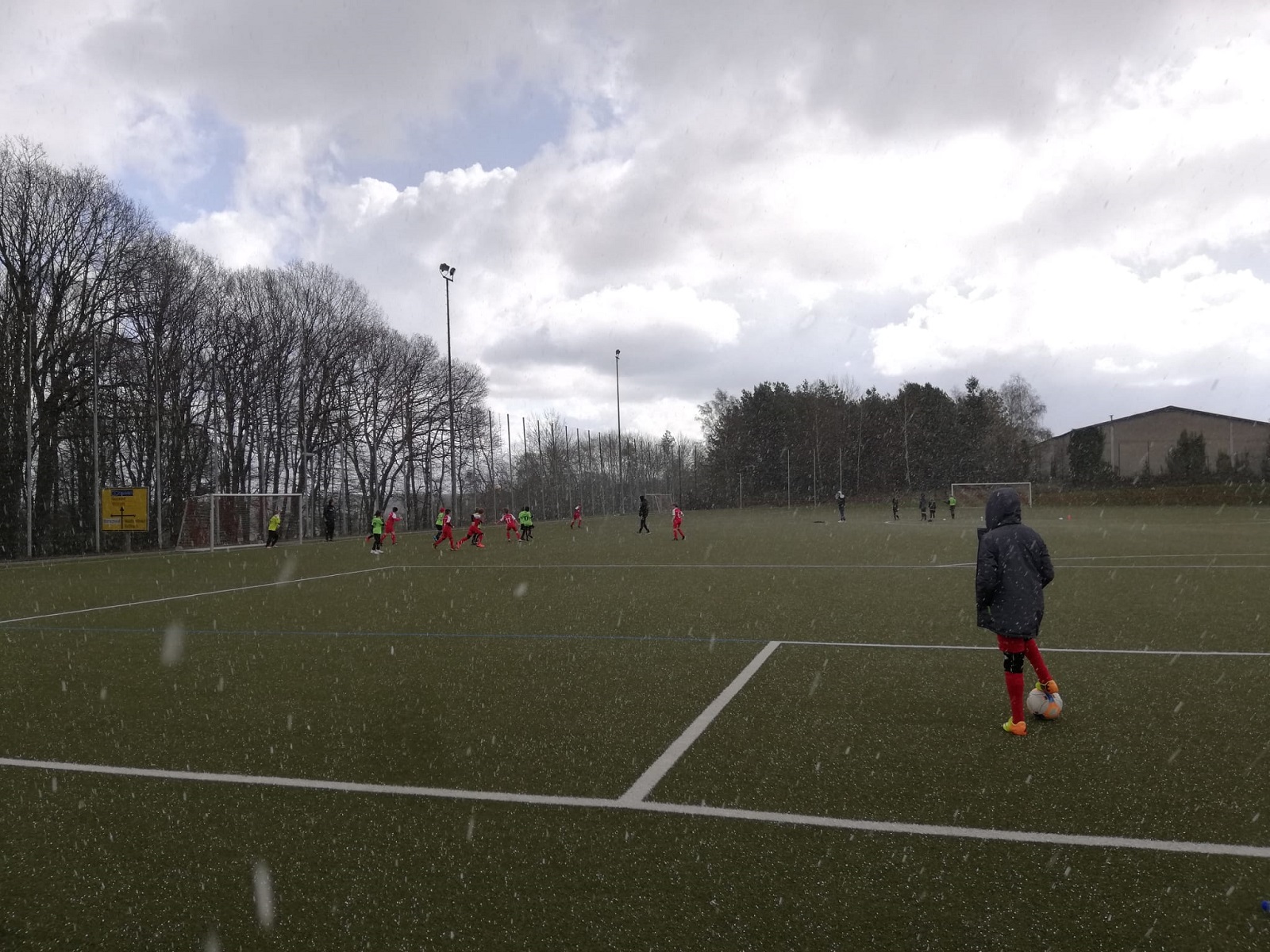 jeden Ball. Dann zieht ein heftiger Graupelschauer über den Platz, der den Fußballerinnen und Fußballern die rauen Körner nur so ins Gesicht peitscht – und schon hagelt es den ersten Treffer gegen Asbach.