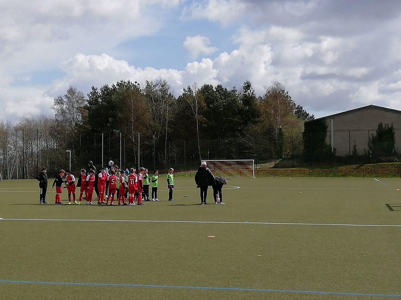 Die E2 der JSG Asbach-Buchholz, heute zu Gast bei der 2. E-Jugend- Mannschaft der SG DJK Fernthal/Neustadt, macht sich warm bei Sonne und Wind und ist heiß auf das heutige Samstagsspiel. Wir hören den Begrüßungsruf der Gastgeber und gleich darauf das altbekannte und aus vollem Herzen gebrüllte „Einer für alle und alle für Einen“ – und schon geht’s los. Gleich zu Beginn arbeiten sich die Fernthaler Spieler gefährlich nahe an das Asbacher Tor heran. Unser Torwart muss sich gleich schon zu Beginn beweisen und mehrere mehr oder weniger gezielte
