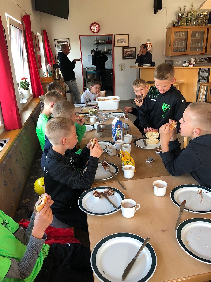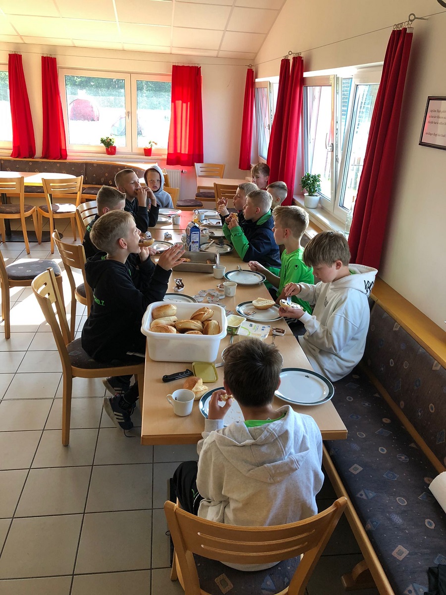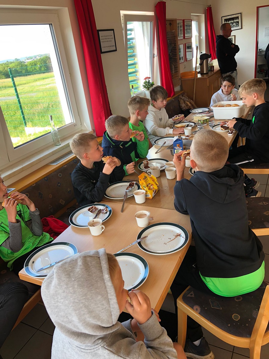 punktlosen Tabellenletzten empfangen. Wir legten gut los und erzielten in der dritten Minute den Führungstreffer. Doch die Gastgeber ließen sich nicht entmutigen und zeigten, dass sie die Platzierung nicht verdient haben. Von Anfang bis Ende hielten sie dagegen und waren spielerisch einer der besseren Mannschaften in dieser Liga. Erst fünf Minuten vor Halbzeitpfiff konnten wir mit einem Doppelschlag die Führung ausbauen. Trotz der vielen Wechsel blieb der Spielfluss erhalten und wir konnten, nach einem Ehrentreffer, das Endergebnis auf 7:1 hochschrauben. Nach Spielschluss fuhren wir gemeinsam wieder zurück auf den Sportplatz nach Asbach. Bei Gegrilltem, Salaten und kühlen Getränken wurde der Saisonabschluss gebührend gefeiert. Auch nach einer Nachtwanderung setzte nicht bei allen die Müdigkeit ein. Doch irgendwann schlummerten alle in ihren Zelten.