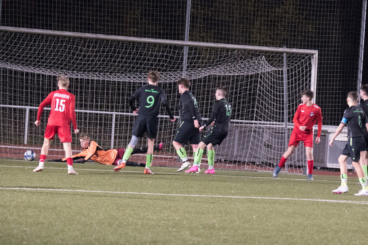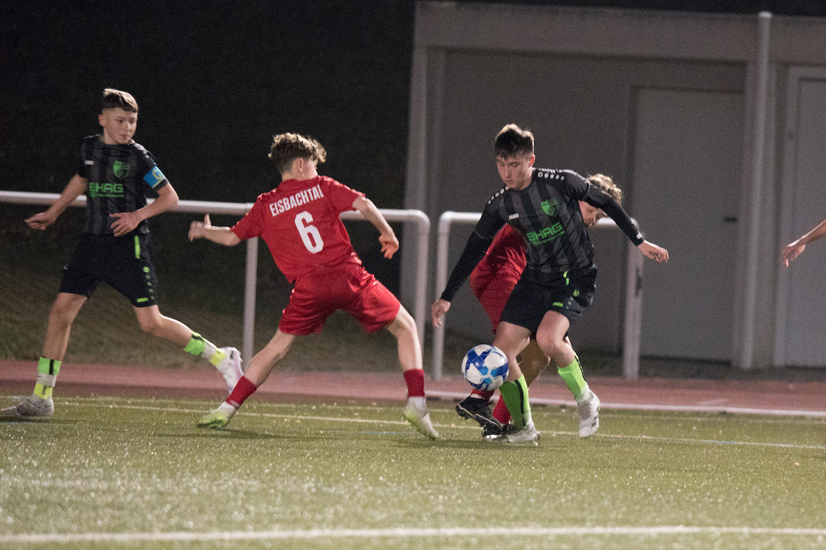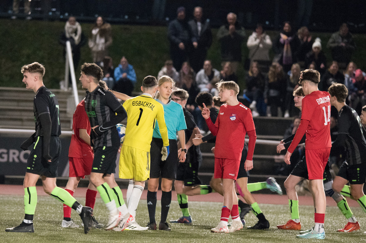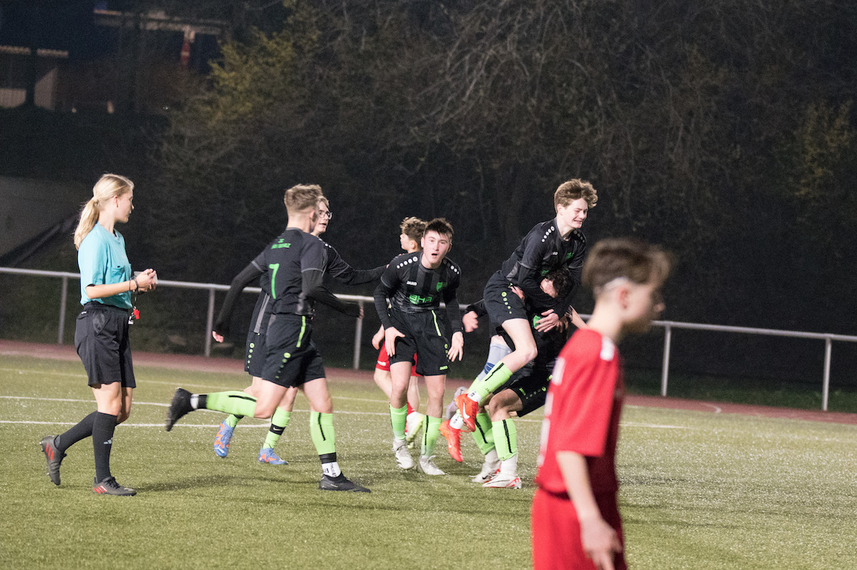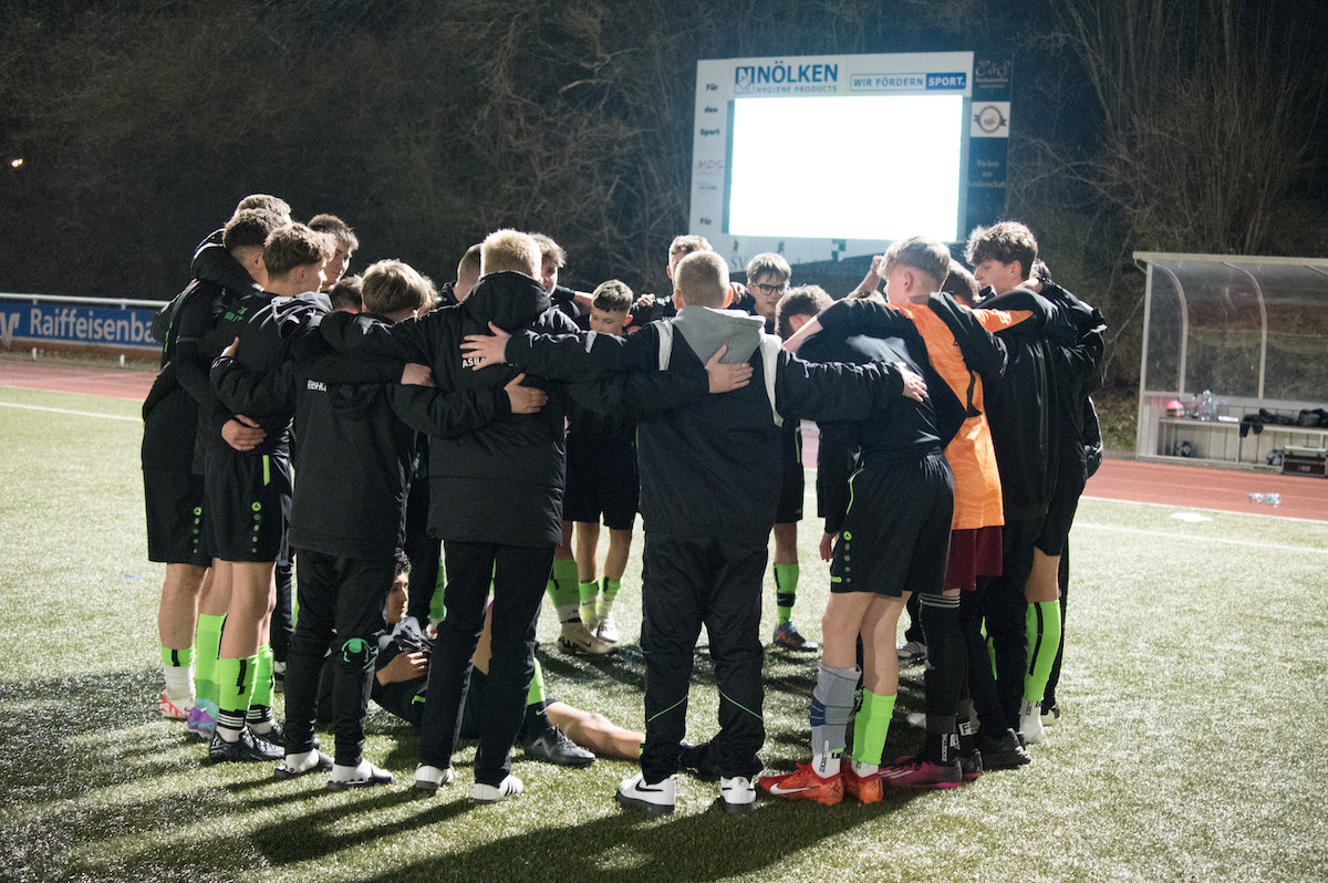 Nach 5 Minuten Nachspielzeit kam dann endlich der erlösende Abpfiff. Die Sensation, an die zuvor nur die wenigsten geglaubt hatten, war gelungen. Wir hatten den klaren Favoriten und Regionalligist aus Eisbachtal, der ebenfalls alles investierte, in einem echten Pokalfight mit 3:2 geschlagen. Was für ein Spiel und was für eine Mannschaft die das erreicht hat. Mit so viel Leidenschaft und Einsatz haben die Jungs bis zur letzten Sekunde gekämpft und sich dadurch diesen Sieg absolut verdient. Überragende Leistung von jedem Einzelnen. Vielen Dank auch an die zahlreichen Unterstützer, mindestens 125 Zuschauer waren an diesem Abend vor Ort. Eine beeindruckende Kulisse für ein C-Jugend Spiel.