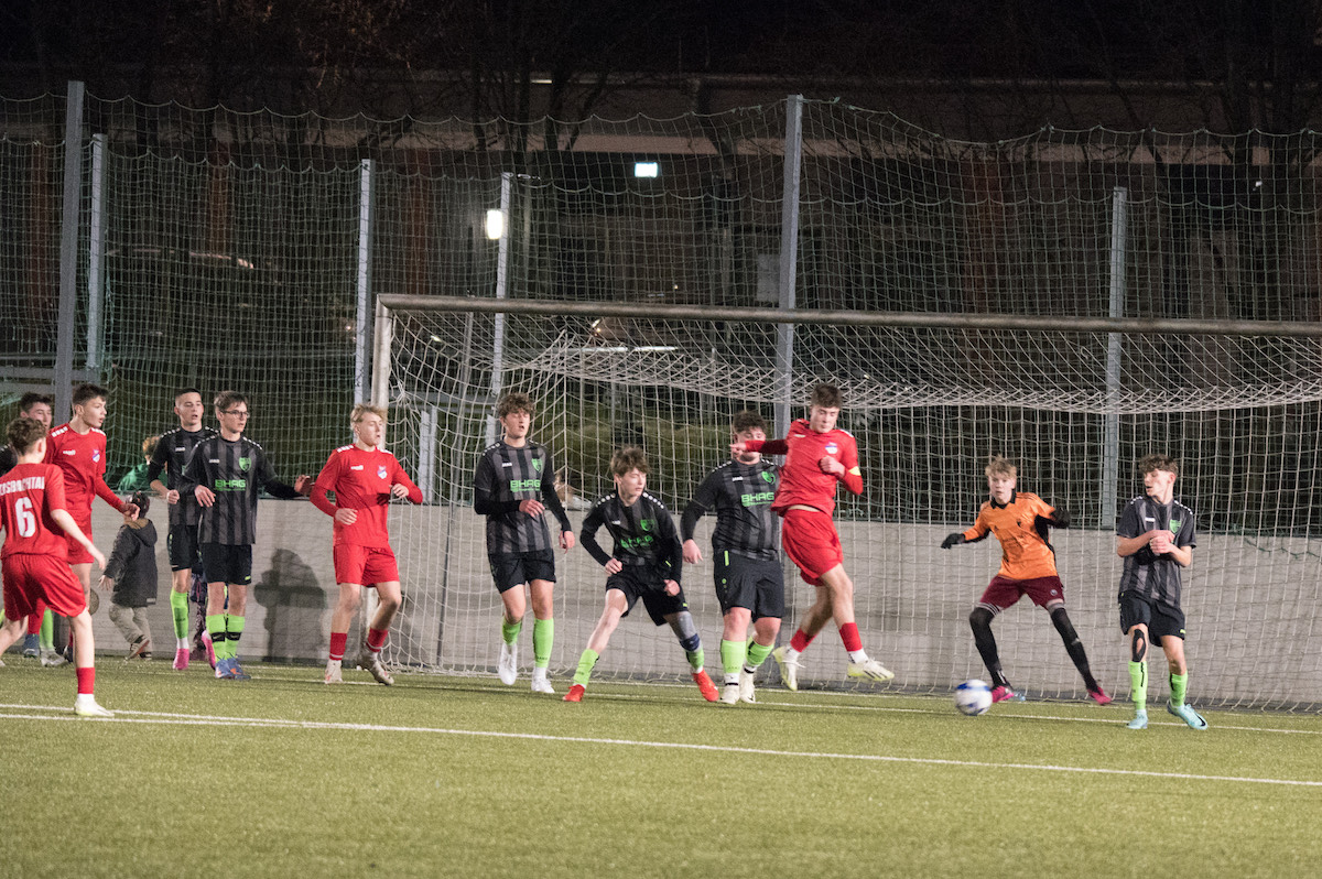 In der 49. Spielminute setzte sich Eisbachtal auf der rechten Seite gut durch und die Flanke fand im Strafraum einen Abnehmer, der den Ball eiskalt verwandelte. So stand es nur noch 2:1. Doch nur eine Minute später gab es einen Freistoß in der eigenen Hälfte für uns. Die Gäste konnten den Ball nicht optimal klären. Der Ball rollte aus dem Strafraum und Luca, der sich bei der Ecke etwas nach hinten hatte fallen lassen, erahnte den Ball, lief diesem entschlossen entgegen und verwandelte den ihn aus gut 22 Metern per Direktabnahme unhaltbar unter die Latte. Mit einem Tor der Kategorie „Tor des Monats“ stellten wir den alten Abstand wieder her und führten mit 3:1. Im Anschluss wurde das Spiel etwas körperlicher und es gab einige Freistöße auf beiden Seiten. 10 Minuten vor Schluss konnte Eisbachtal dann auf 3:2 verkürzen und es wurde noch einmal richtig spannend. Wir versuchten mit allem was wir hatten zu verteidigen und auch die Einwechselspieler Ramin, Luis und Justin waren nach ihren Einwechslungen von der ersten Minute an da und gewannen wichtige Zweikämpfe. Es rollte ein Angriff nach dem anderen der Gäste, aber unsere Defensive hielt dem Stand. Und auch wir erarbeiteten uns nochmal gefährliche Chancen.