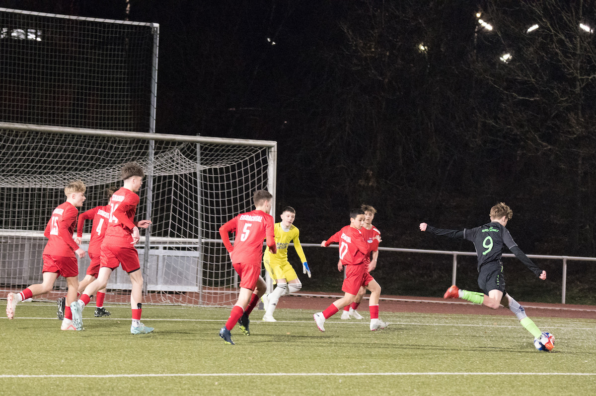Torschuetzen: 1:0 Robin Klein (13. Minute), 2:0 Jason Schmitz (36. Minute), 2:1 Diwan Isik (46. Minute), 3:1 Luca Albat (48. Minute), 3:2 Ilir Krasniqi (64. Minute)