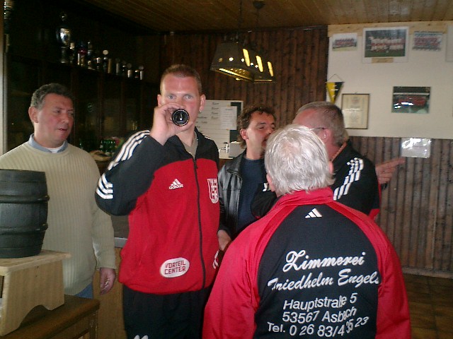Das war im Spiel gegen den TuS Rodenbach, in dem wir zur Halbzeit 0:3 hinten lagen und abends zur Meistertour nach Düsseldorf wollten (und auch sind). In der Pause hat unser Coach Mini "gedroht", dass wir nicht fahren würden, wenn wir uns jetzt nicht noch zusammenreißen würden. Ich glaube, wir haben dann doch noch mit 7:3 gewonnen.