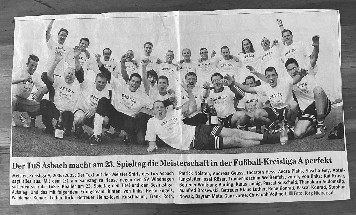 Toll waren natürlich zum Abschluss meiner Seniorenzeit die Meisterschaft in der A-Klasse und der damit verbundene Wiederaufstieg in die Bezirksliga.