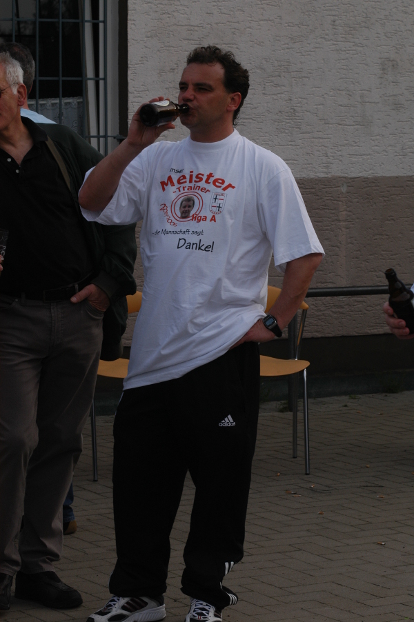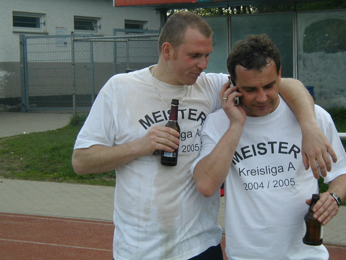 Es war der „perfekte Tag“: Sommerwetter, Freibier, T-Shirts, Zuschauer und dann liegen wir in der Halbzeit 0:3 zurück. Ich habe in der Halbzeit dann zur Mannschaft gesagt, wenn das Spiel verloren geht, ist Düsseldorf gestrichen. Wir haben dann das Spiel sensationell noch gedreht und mit 7:3 gewonnen. Wir haben erst auf dem Platz den Aufstieg mit den Zuschauern gefeiert und anschließend die Düsseldorfer Altstadt unsicher gemacht. Der Tag danach fühlte sich zwar wie ein Abstieg in die Kreisliga D an. Aber es war die perfekte Dramaturgie.