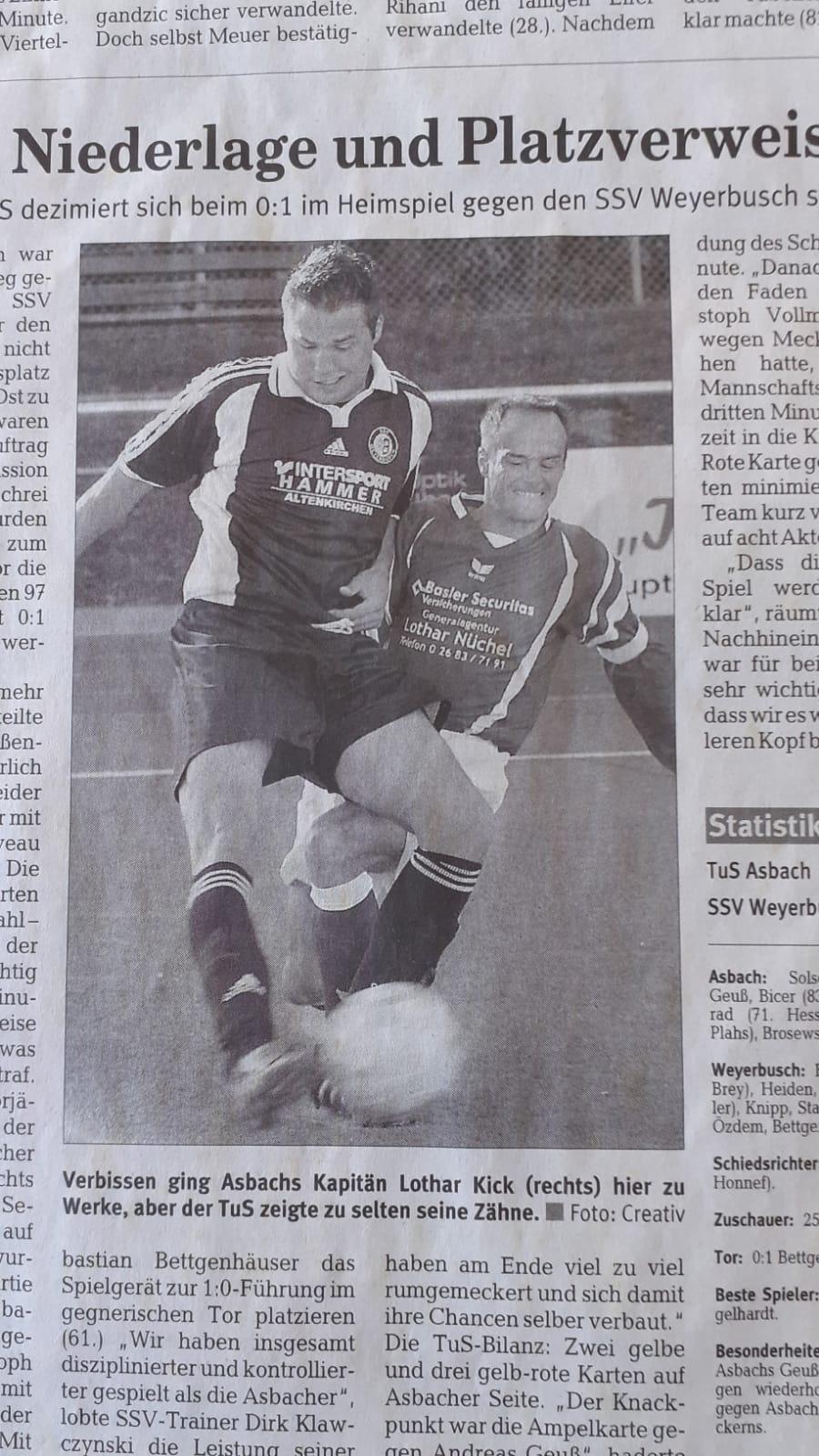 n den nächsten drei Jahren half er sporadisch immer wieder in der TuS-Reserve aus. Und man will es kaum glauben, beim 2:0-Heimsieg über die SG Weitefeld (12.12.2009) steht er in der Startaufstellung (Trainer Fredi Knipp: „Mein letztes Aufgebot!“).