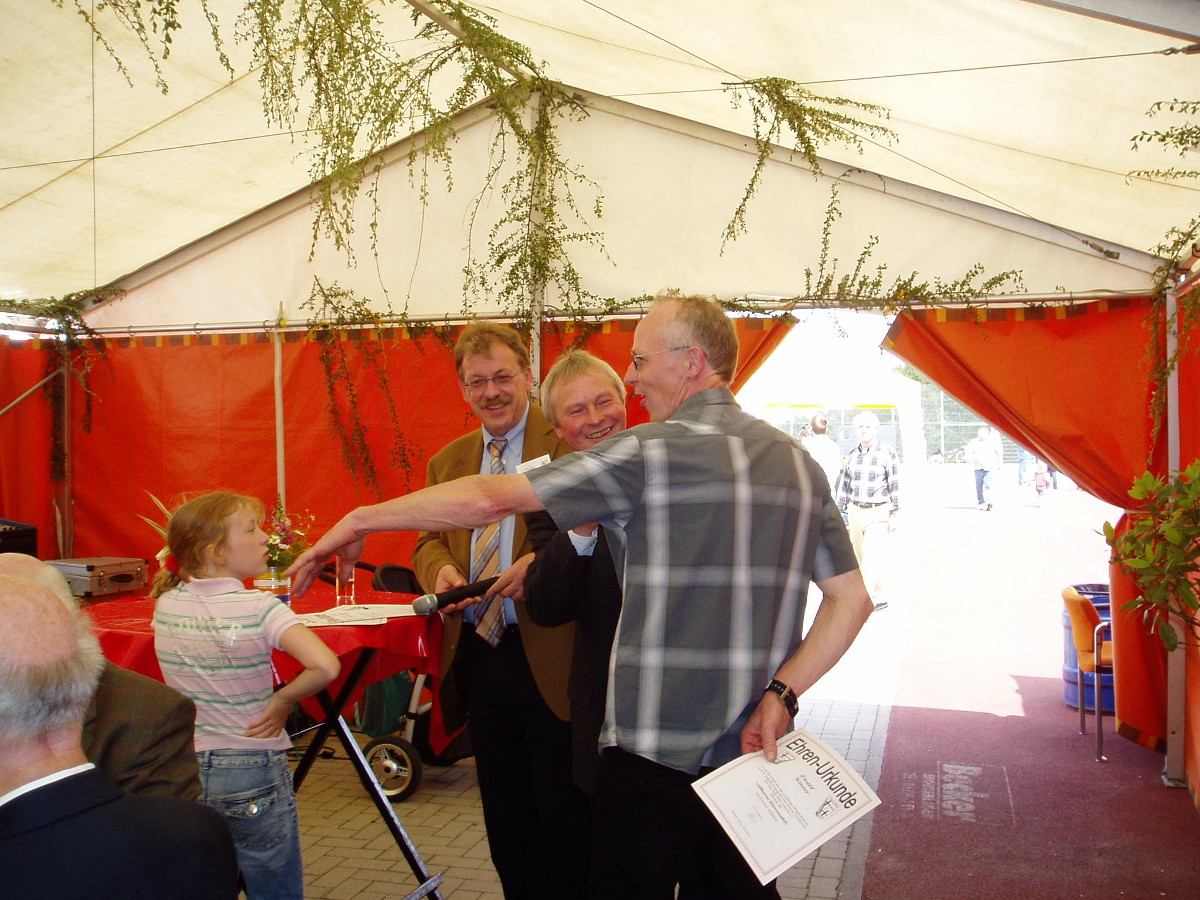 Vorsitzender Franz Varel:„Ewald ist ein sehr zuverlässiger Mensch mit einer klaren eigenen Meinung, der bis heute noch ganz viel für den TuS macht. Konkret hat er lange Jahre als Trainer im Jugendbereich erfolgreich mitgearbeitet und hat ein gutes Standing im gesamten TuS. Dies wurde auch dadurch dokumentiert, als während des Spiel der AH gegen die Lotto-Elf ein riesiges Transparent von Zuschauern hochgehalten wurde mit der Aufschrift: Ewald unser Fußballgott!“