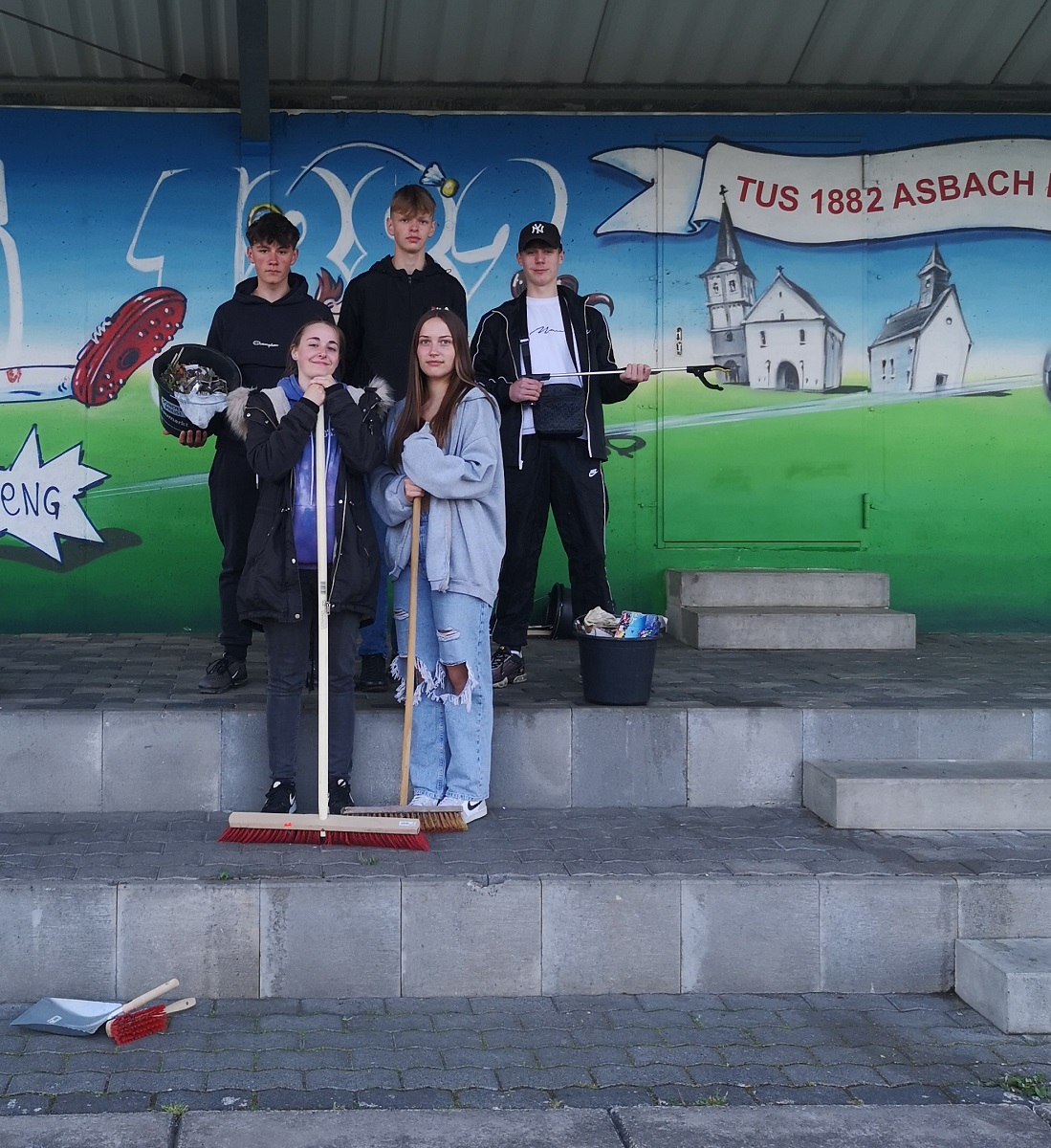 Eine spontane Säuberungsaktion auf dem Asbacher Sportplatzgelände wurde von zwei Gruppen Jugendlicher